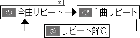 *1リピートのしかたは、選曲方法によって異なります。選曲方法を選んで選曲する(選曲モード)順不同に再生する(ランダム)